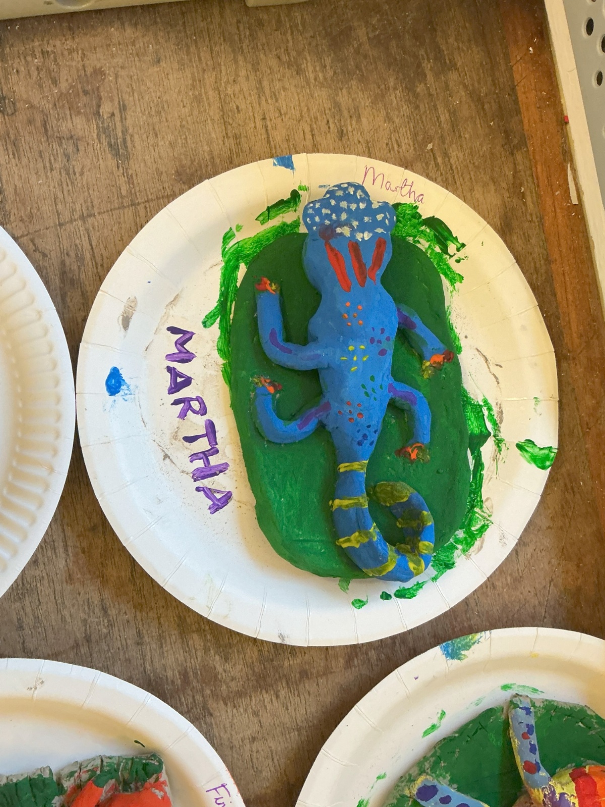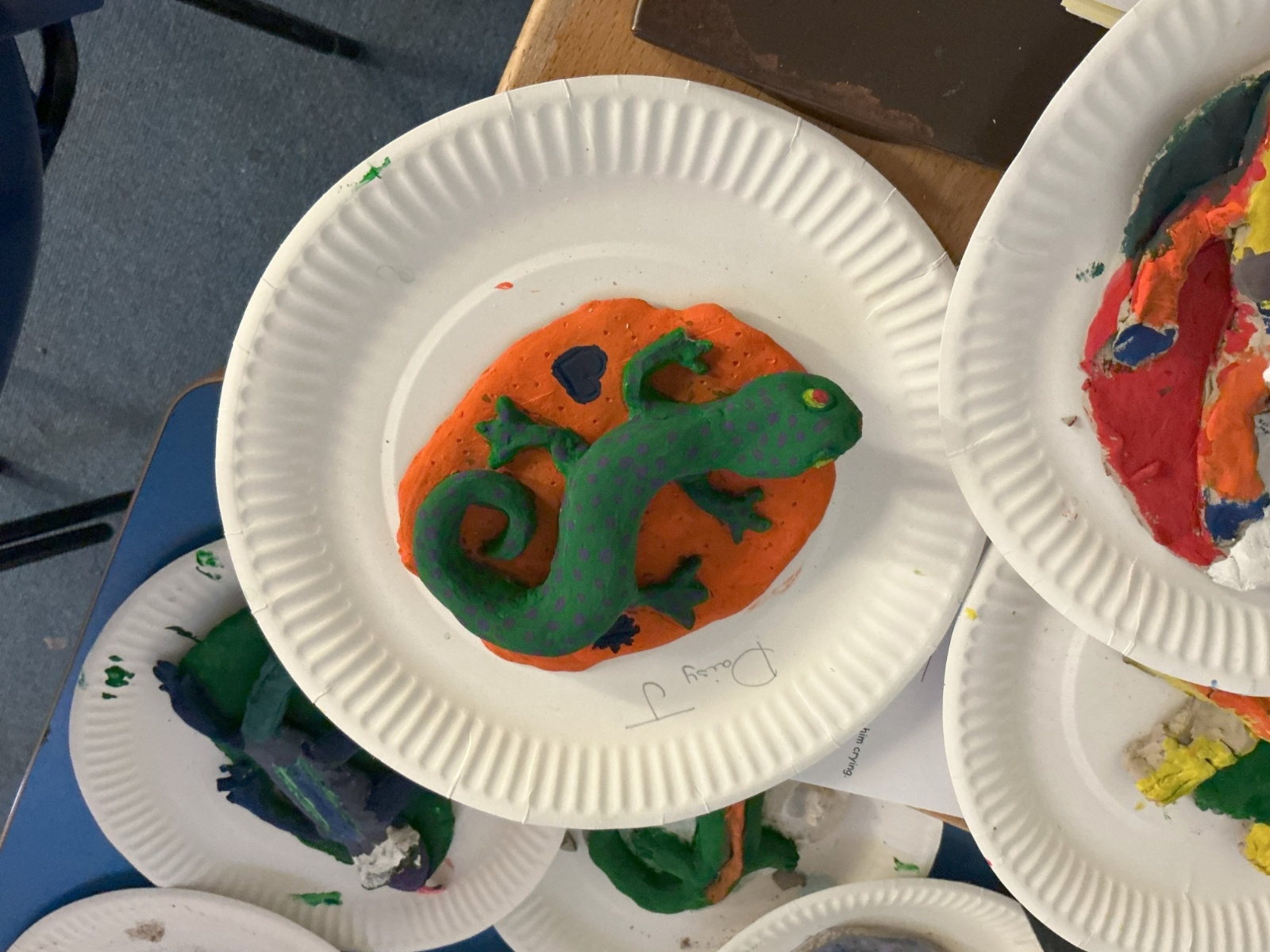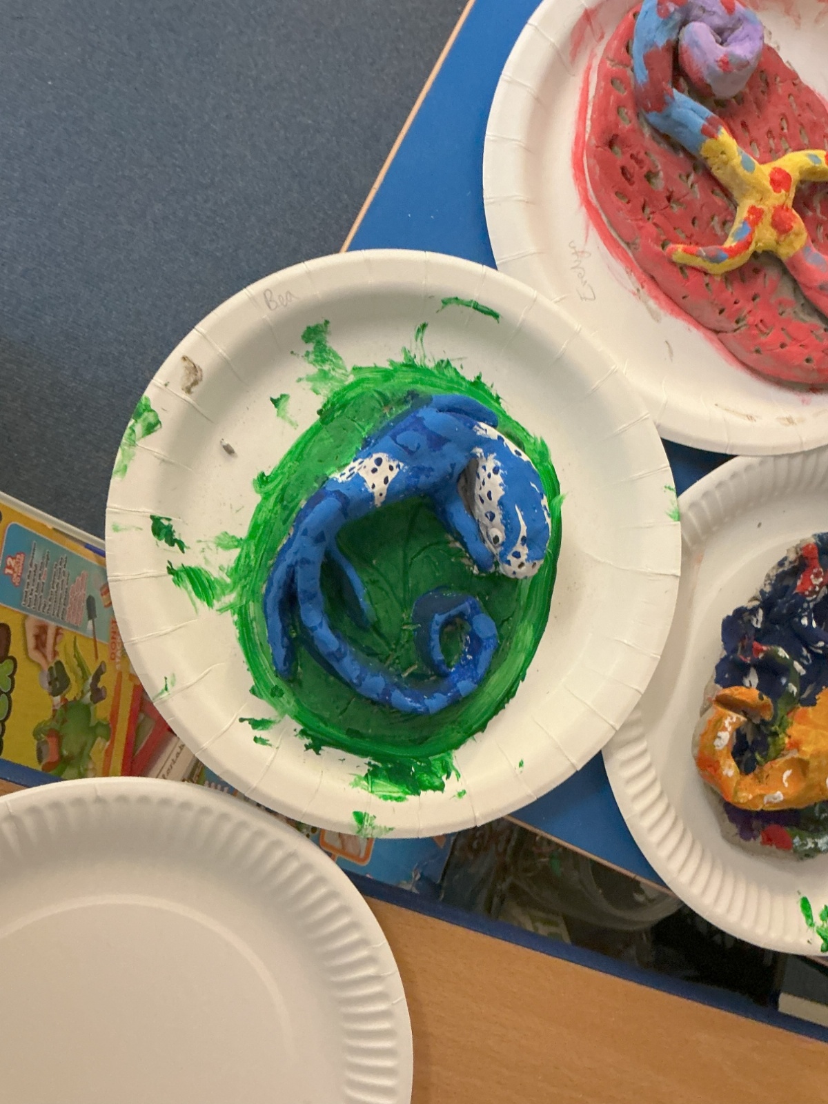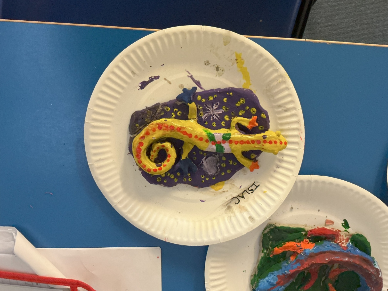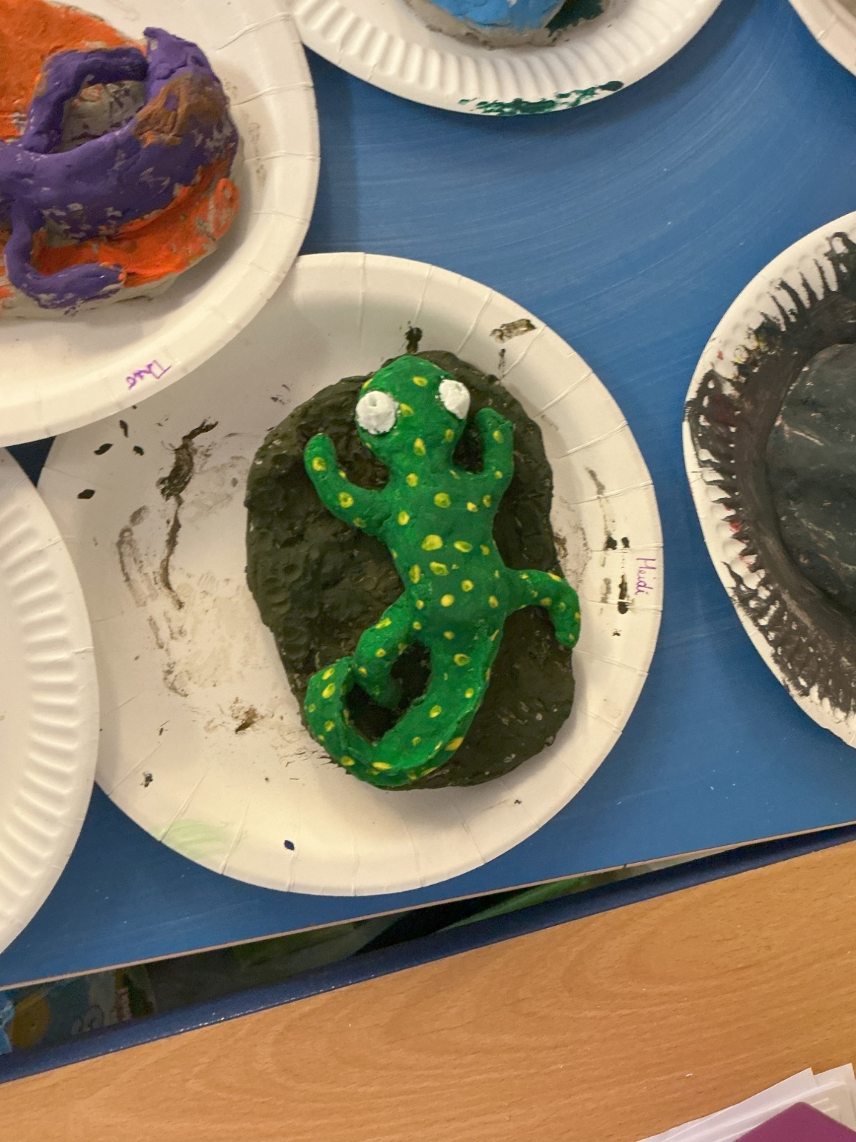 Once our clay lizards had dried, we decorated them using playful colours and designs.